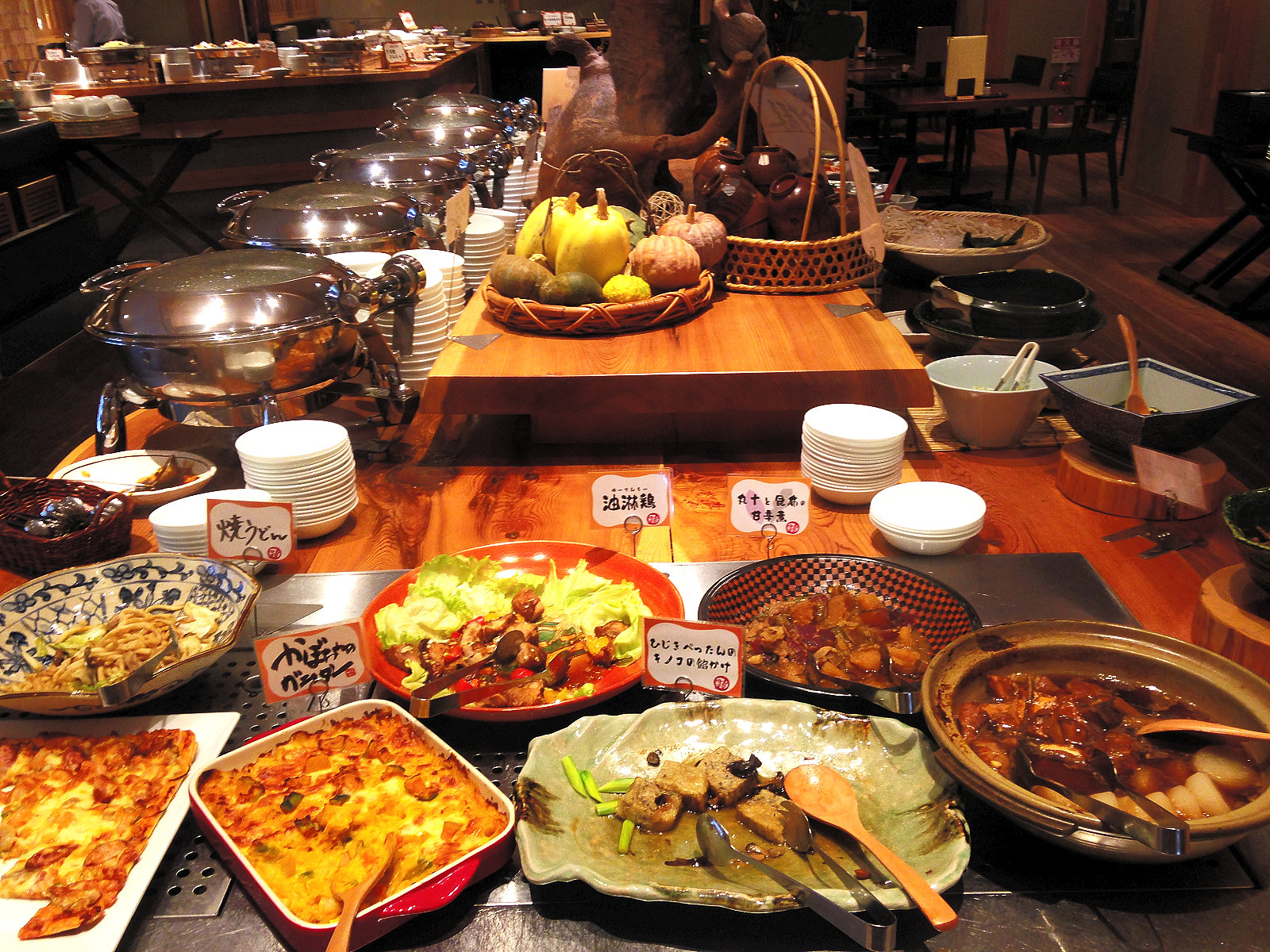澎湃的自助式晚餐令人眼睛大亮,有一道道以會津當令食材製作的鄉土料理