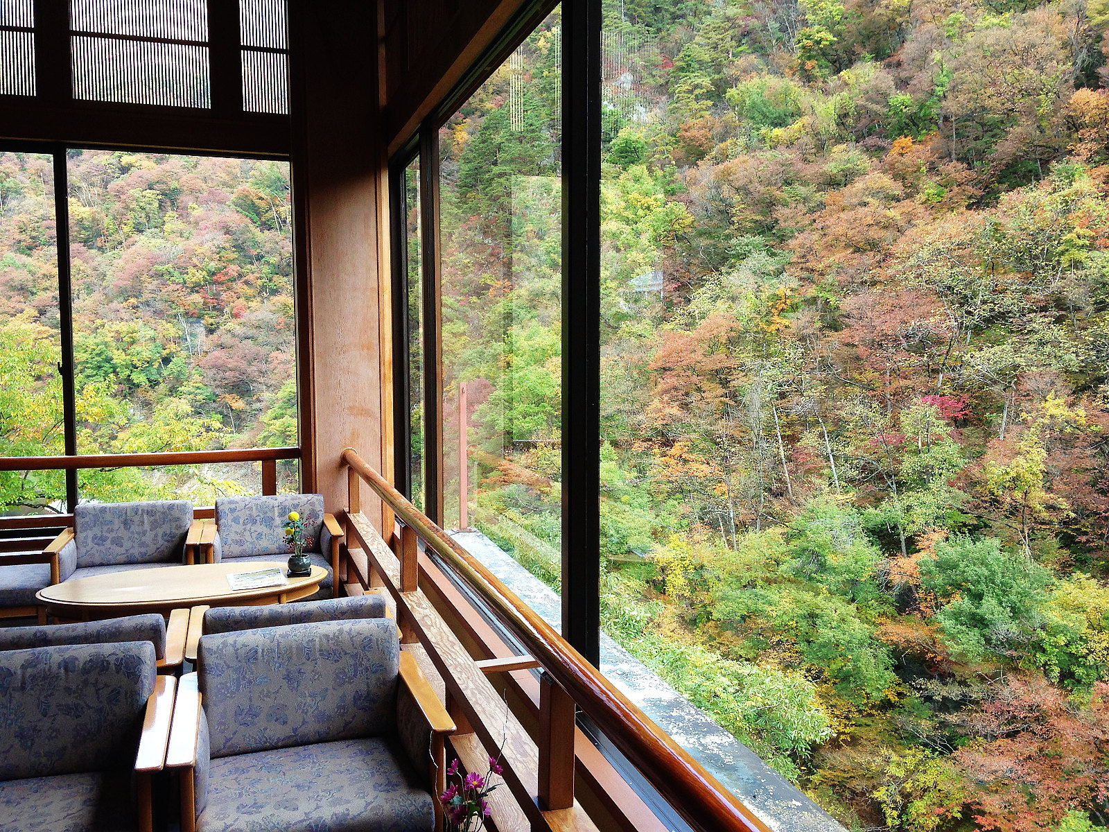 旅館位於芦ノ牧温泉,被阿賀川溪谷與蓊鬱青山環繞,擁有絕佳自然景觀