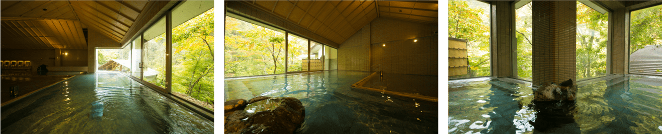 梯田溫泉全部以檜木打造,全部面向溪谷,可一邊享受泡湯之樂,一邊飽覽隨四季遞嬗的美