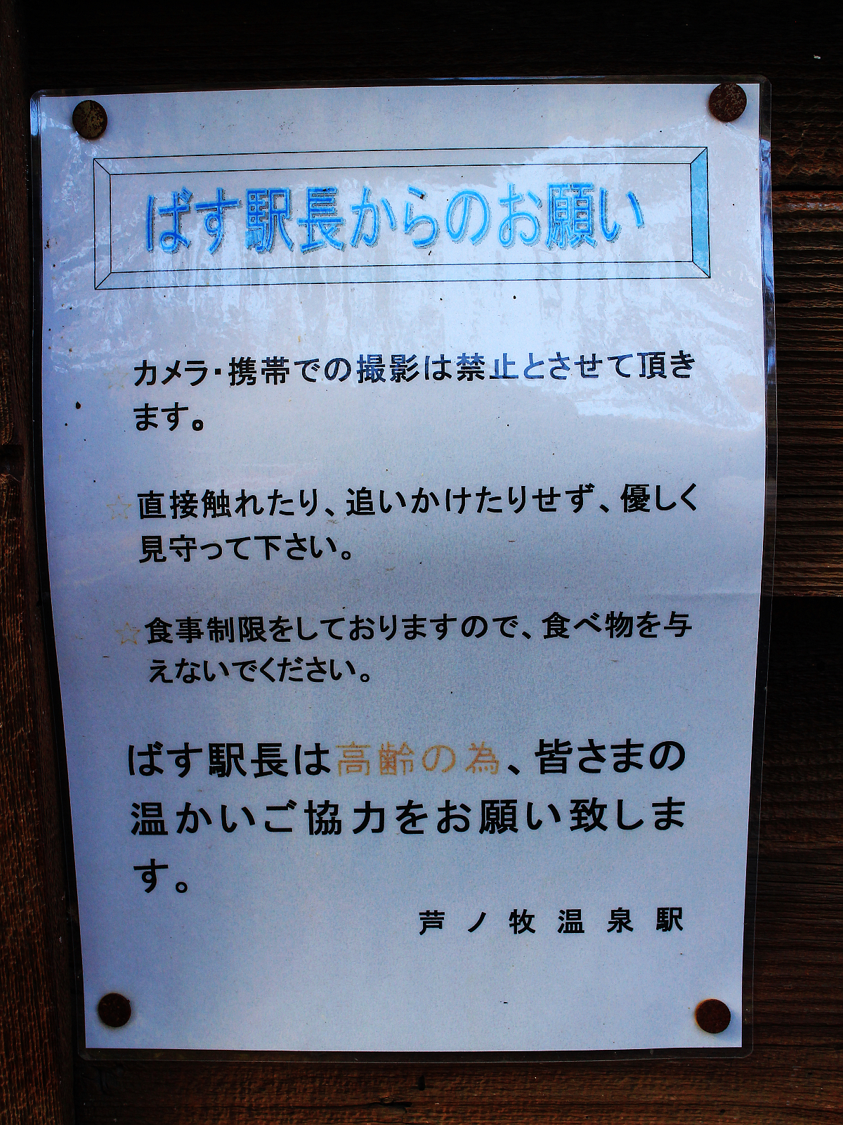 禁止攝影告示,因為初代長壽貓巴士站長晚年被發現眼睛異常,主因是年紀大,