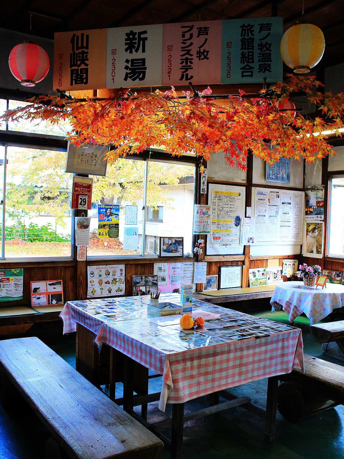 大川莊溫泉旅館位於會津若松市南方的芦ノ牧温泉,往返都會經過芦ノ牧温泉駅,