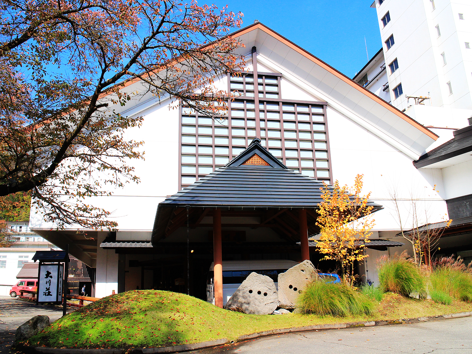 可從這裡搭旅館免費(無料送迎)巴士到「大川莊」