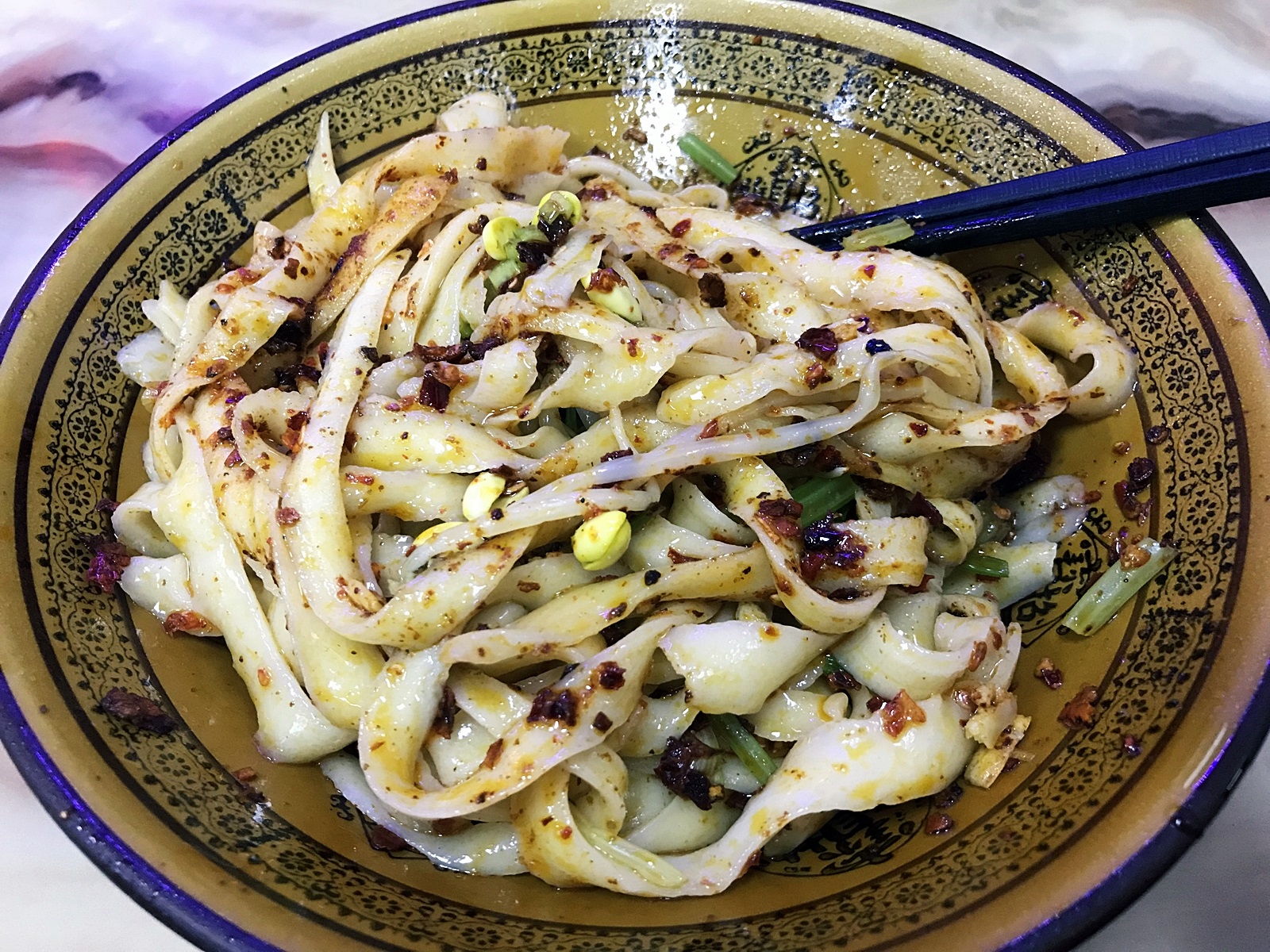 搓魚麵是張掖特有傳統麵食,做法是以手掌將麵條搓成約一寸長,然後入鍋內煮熟,